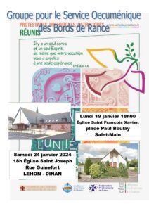– Lundi 19 janvier à 18h à l’Eglise Saint François Xavier, 1 place Père Paul Boulay, Saint Malo ;